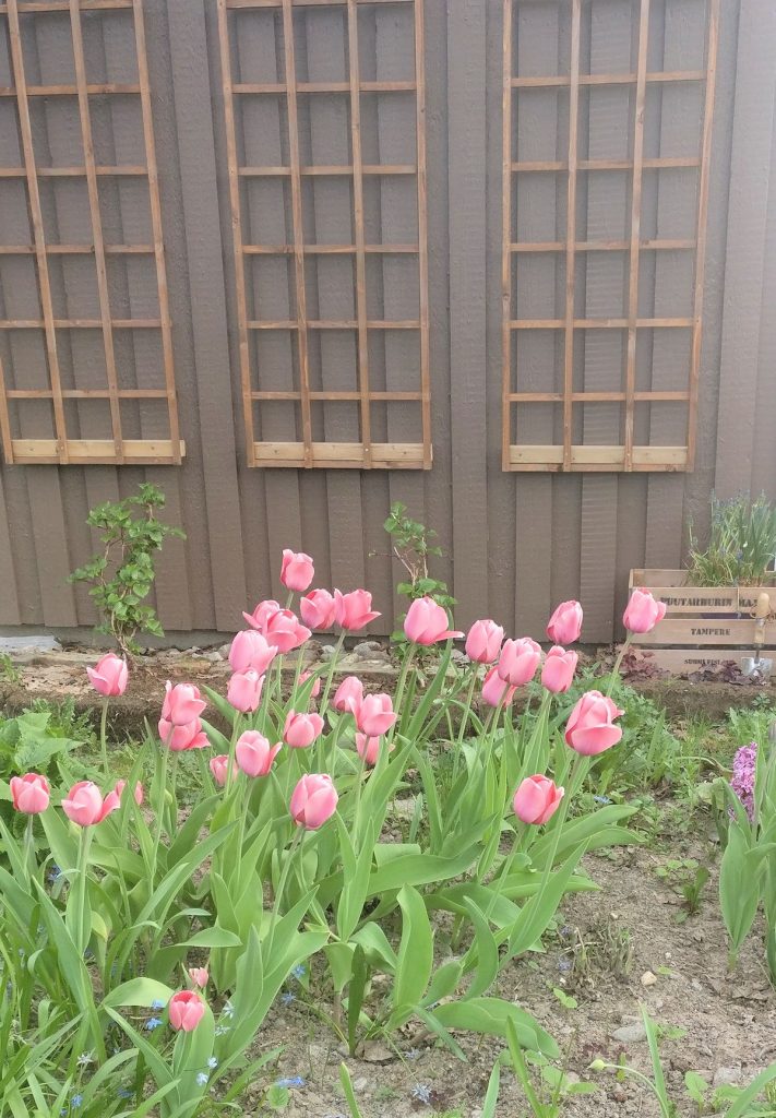 Darwin hybridit ovat kestävimpiä tulppaaneja. Istutin nämä Pink Impressionit viime syksynä. Jos hyvin käy saan nauttia niiden kauneudesta vielä monena tulevana vuonna. Edellissyksynä istuttamani Angelique, Curly Sue ja Shirley’s Dream tulppaaneista sen sijaan ei ole jäljellä kuin muutama vaatimaton yksilö.