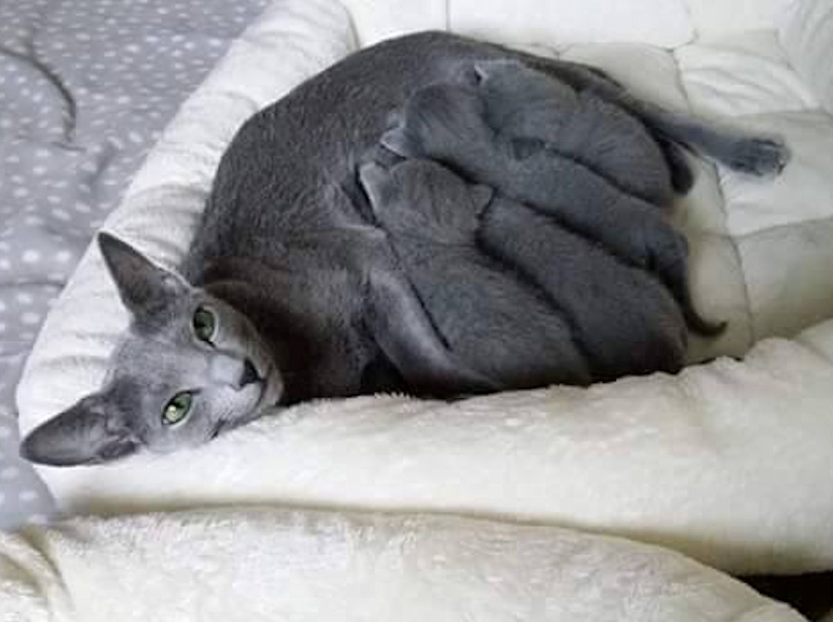 Helinä-äiti pentueensa kanssa. Kuva: Habeebas cattery