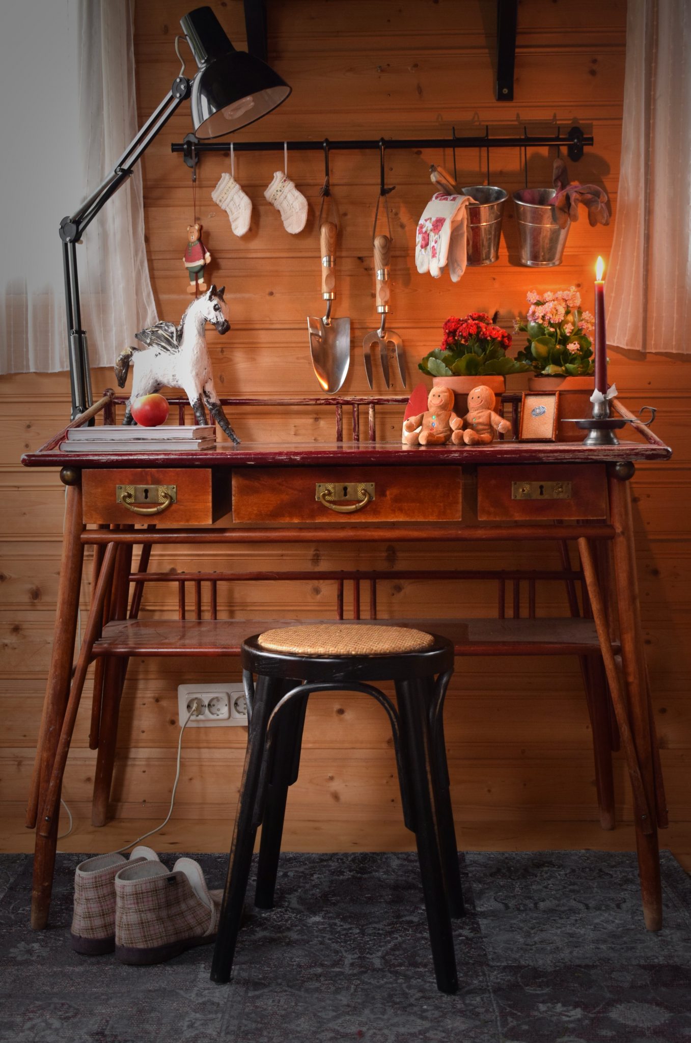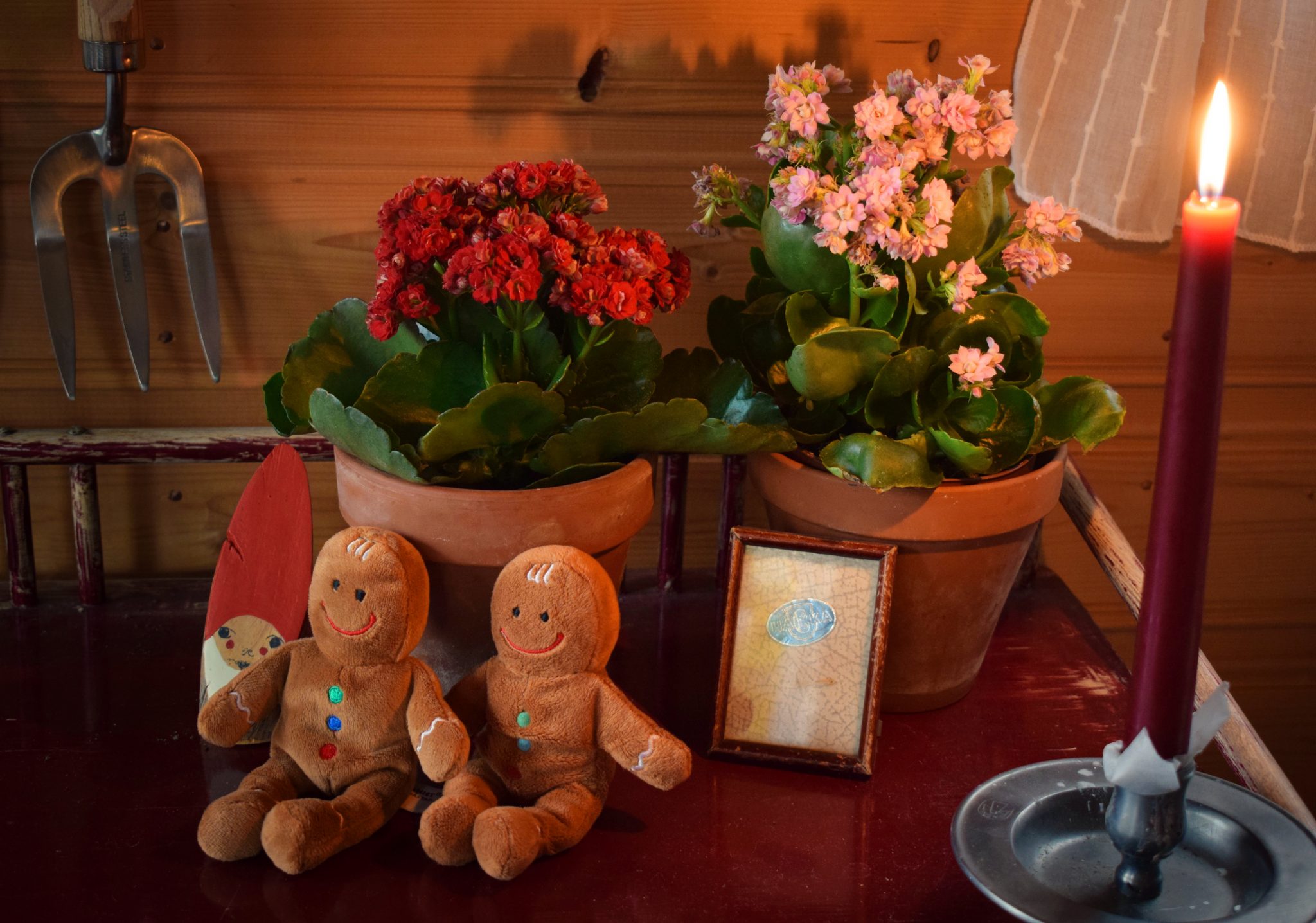 Joulutunnelmaa puutarhurin pöydällä.