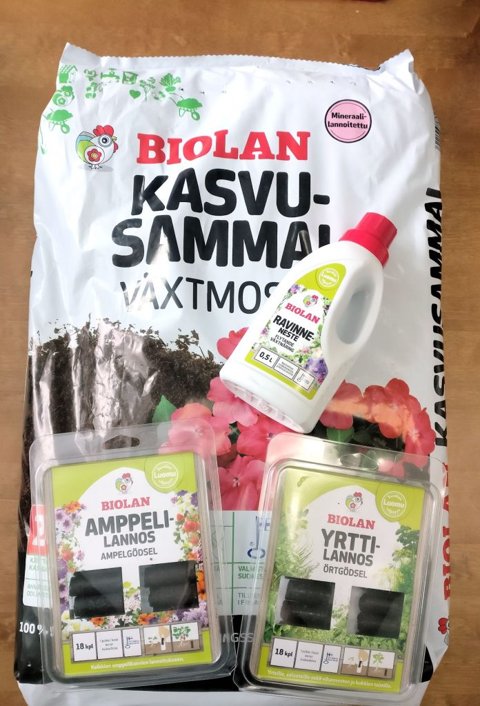Minua on kutkuttanut jo jonkin aikaa ajatus kokeilla kasvusammalta, joten arvatkaapa olinko iloinen kun kuulin voittaneeni Biolanin Instagram arvonnasta tuotepaketin, jossa on kasvusammalta! Paketissa oli mukana myös ravinnenestettä sekä amppeli- ja yrttilannospuikkoja.