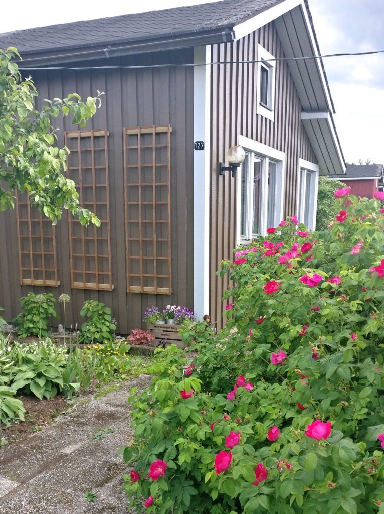 Edellisestä käynnistäni siirtolapuutarhalla ehti kulua melkein viikko. Eilen lauantaina mökillä olikin vastassa ihana näky, kun moni kukka oli alkanut kukkimaan viikon aikana! Kirkaan pinkit kukkansa avannut valamonruusu näkyi jo kaukaa. Mökkipolun varressa kukkivat violetit kurjenmiekat. Ukkolaukkojen kukinta alkaa olla ohi ja jäljellä ovat hauskan näköiset pallerot siemenkotineen.