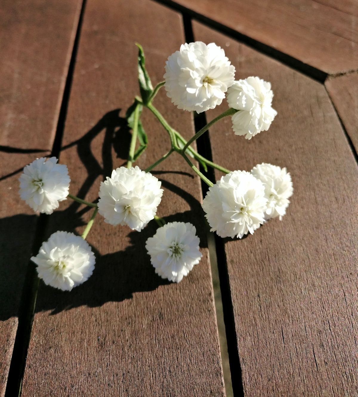 Valkoinen kerrottu pieni kukka.