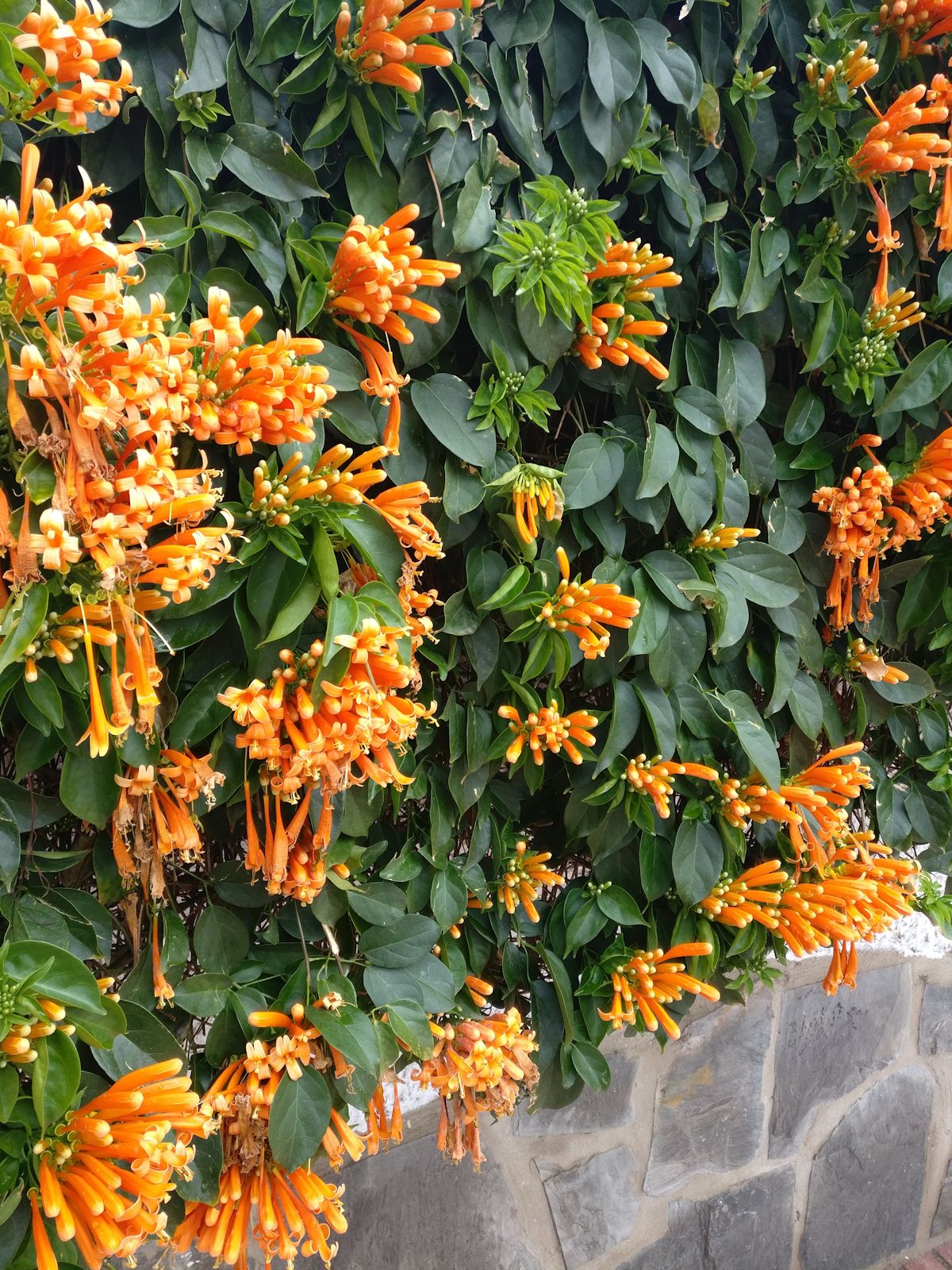 1. Olipas kiva kuulla näiden kukkien nimiä! Mietinkin mikä tuo kaunis oranssi köynnös on. Se on siis tulitrumpetti. Kiitos tunnistuksesta. 🙂 Matkakuume on krooninen myös minulla.
